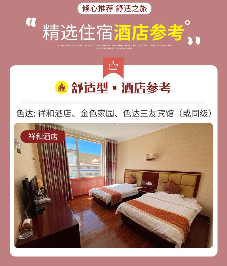 【住宿】:舒适型酒店1晚、经济型酒店1晚